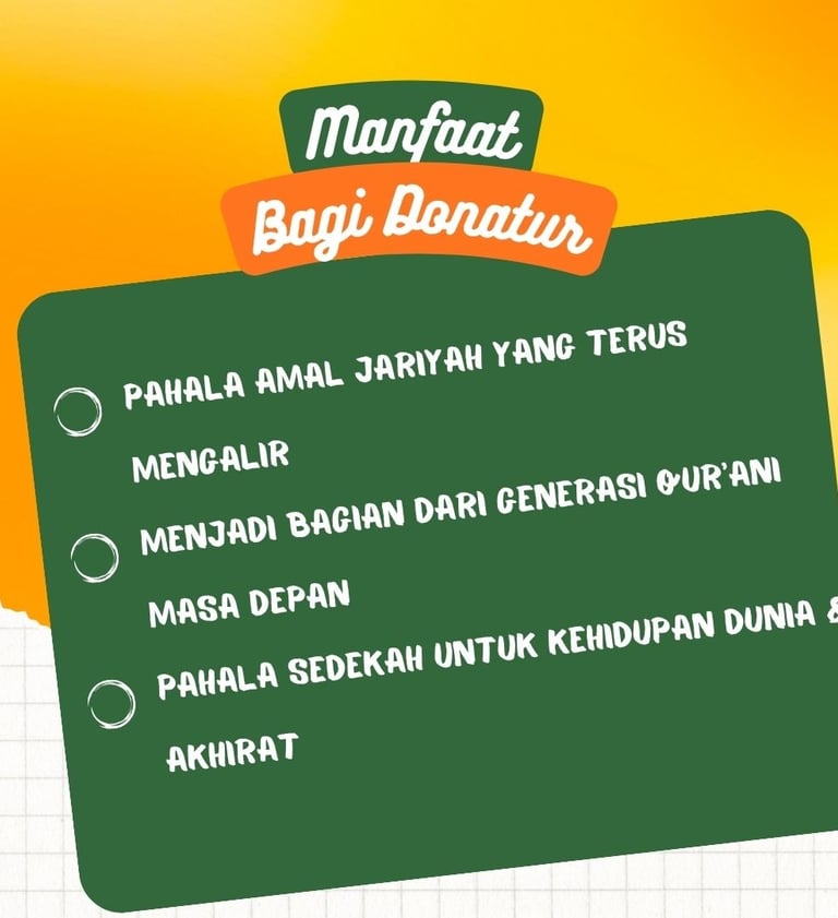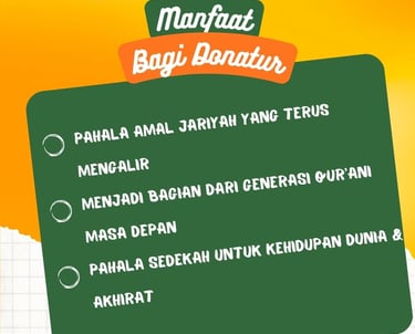 Saat ini, banyak anak yatim dan dhuafa memiliki semangat tinggi untuk belajar Al-Qur’an, namun terkendala fasilitas yang layak.